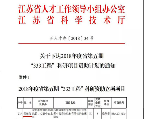 此外,張瑤俊副院長關(guān)于“藥物球囊在急性冠脈綜合征患者中的安全性和有效性的臨床研究”的科研項(xiàng)目也被列入省第五期“333工程”科研項(xiàng)目資助計(jì)劃。