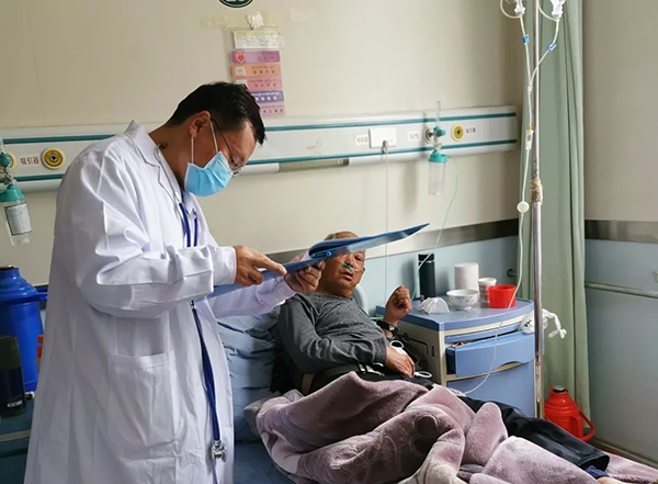 因這里的地理氣候及游牧生活習(xí)慣,患有肺心病的人群較多,呼吸科一病區(qū)主任任光明不顧連續(xù)幾日發(fā)熱、頭疼,堅(jiān)持門診、查房和教學(xué);
