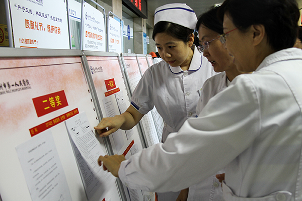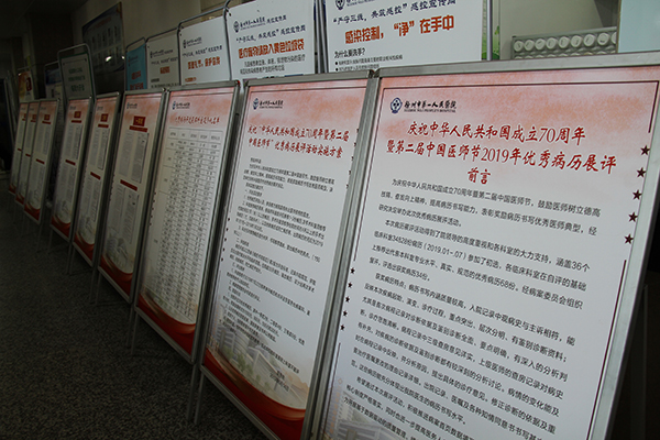為慶祝中華人民共和國成立70周年暨第二屆8.19中國醫(yī)師節(jié),徐州市第一人民醫(yī)院在院內(nèi)舉辦第三屆優(yōu)秀病歷展評活動。展評日恰逢中國醫(yī)師節(jié),門診大廳人頭攢動,過往醫(yī)生和病患紛紛駐足觀看,或反復(fù)翻閱一份病歷或三五成群討論學(xué)習(xí)。