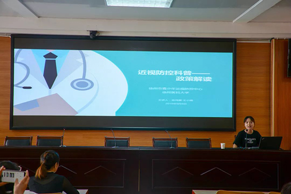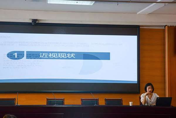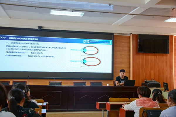 隨后,徐州市第一人民醫(yī)院眼視光中心、徐州青少年近視防控中心成員分別就近視防控工作政策的解讀、近視科普對(duì)在場(chǎng)老師進(jìn)行培訓(xùn),培訓(xùn)過程中,老師們認(rèn)真的學(xué)習(xí)了近視防控工作的知識(shí),積極提出問題,熱烈討論學(xué)生近視的現(xiàn)狀與問題。王小娟主任和團(tuán)隊(duì)成員對(duì)老師們提出的問題進(jìn)行熱情的解答,得到老師們的一致好評(píng)。