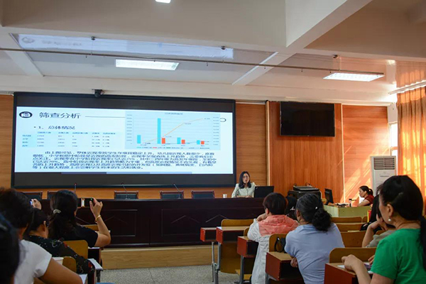會(huì)上,王小娟主任肯定了2018年下半年到2019年上半年第一年的篩查工作,在獲取了銅山區(qū)各年級(jí)段學(xué)生的屈光情況下,對(duì)問題學(xué)生給予及時(shí)反饋,已有部分學(xué)生家長(zhǎng)帶學(xué)生至醫(yī)院進(jìn)行檢查、矯正和配鏡。徐州市疾控中心、學(xué)校和衛(wèi)生院積極配合工作,使得篩查工作能夠順利完成。然后對(duì)現(xiàn)階段全區(qū)在校學(xué)生的屈光狀況進(jìn)行總結(jié)和分析,小學(xué)和初中階段是近視的高發(fā)階段,近視率在小學(xué)階段近視率已達(dá)近25%,其中三四年級(jí)為高發(fā)年級(jí)段,至初中已達(dá)近70%。高中階段近視率上升趨勢(shì)略為平緩,但高度近視情況不容樂觀,有著顯著的上升趨勢(shì),近視防控工作刻不容緩。