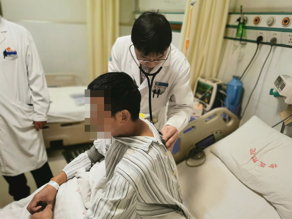 11月1日,睢寧縣44歲的閆先生在家里吃午飯時(shí)突然出現(xiàn)右側(cè)頸部燒灼感,并立即放射至心臟部位,胸悶、胸痛,撕裂一樣的疼痛使他大汗淋漓,而在此之前,他已隱約感到胸部疼痛10小時(shí)。家人將他送至當(dāng)?shù)蒯t(yī)院,檢查結(jié)果顯示為主動(dòng)脈夾層動(dòng)脈瘤,隨后立即聯(lián)系轉(zhuǎn)至徐醫(yī)附院重癥醫(yī)學(xué)科(ICU),此時(shí)已是晚上10點(diǎn)。