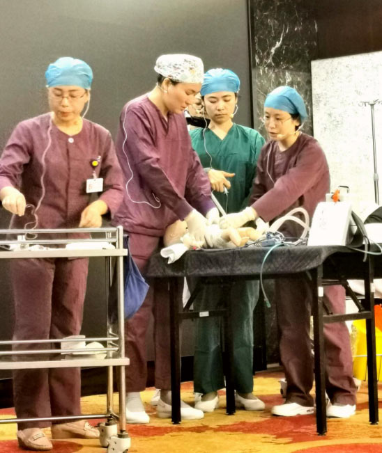 培訓(xùn)班上,分別由各個(gè)主任專家講解了最新的臨床知識(shí),分別是:吳慶榮主任--前置胎盤,朱錦明主任--子癇前期,孟慶勇主任--羊水栓塞,王巧蓮主任--危重孕產(chǎn)婦的識(shí)別及轉(zhuǎn)診時(shí)機(jī)。實(shí)操演練---最實(shí)用的產(chǎn)科臨床核心技術(shù)手把手教示范學(xué)包括:成人心肺復(fù)蘇、新生兒窒息復(fù)蘇、肩難產(chǎn)以及羊水栓塞的現(xiàn)場演練,并手把手進(jìn)行剖宮產(chǎn)術(shù)中子宮大出血時(shí)各種縫合技術(shù)的培訓(xùn)。整個(gè)培訓(xùn)現(xiàn)場洋溢著濃厚的學(xué)習(xí)和交流的氛圍,有力的推動(dòng)了全市孕產(chǎn)婦和新生兒危急重癥救治能力的提升。