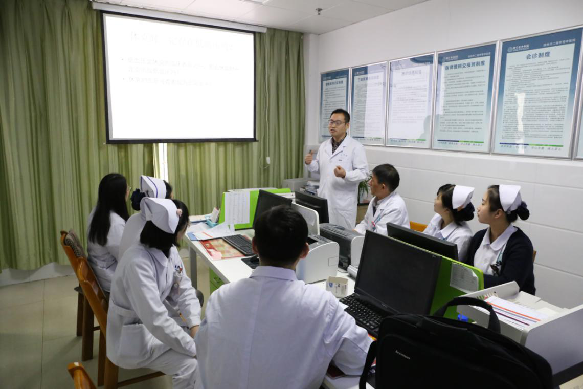 工作室負責(zé)人、重癥醫(yī)學(xué)科主任周文博給心內(nèi)科醫(yī)護人員做專題學(xué)術(shù)講座。