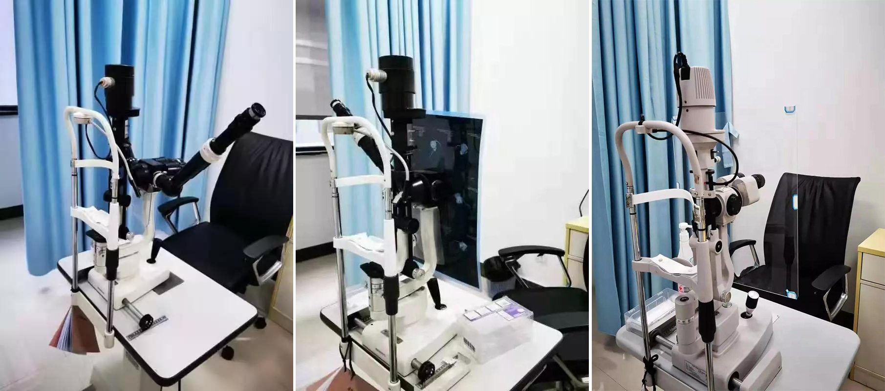 眼科裂隙燈檢查需和患者面對面交流,無法避免飛沫傳播,增加了醫(yī)務(wù)工作者的診療風(fēng)險。支部委員、眼科門診部主任鐘瓴設(shè)計一款隔離防護(hù)板,初步想法是用醫(yī)用膠片,缺點(diǎn)是可視度太低,經(jīng)過反復(fù)試驗(yàn),最終用透明亞克力板制作擋板,既不影響互動,又解決了飛沫傳播、交叉感染問題。邊緣貼上標(biāo)簽的人性化設(shè)計有效防止撞傷,獲得臨床一線醫(yī)生的一致好評。