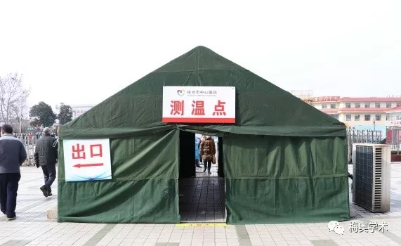 上午10點(diǎn),小編走近徐州市中心醫(yī)院大門,看到這樣的場景:一個綠色的帳篷佇立在門診大樓前,門頭寫著“測溫點(diǎn)”三個醒目的大字,兩個入口處站著四名身著防護(hù)服、戴著口罩和護(hù)目鏡的醫(yī)護(hù)人員,她們手拿體溫計(jì),嚴(yán)格對所有入院人員監(jiān)督口罩佩戴情況和監(jiān)測體溫。