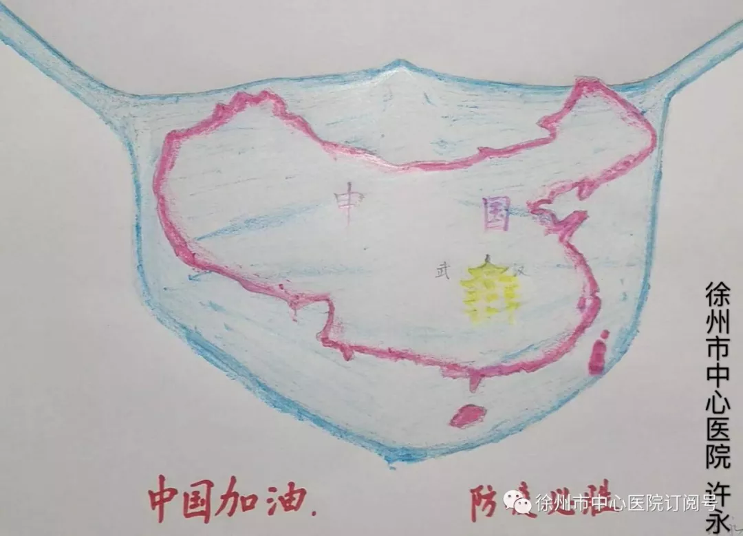 最近兩天,徐州市中心醫(yī)院骨關(guān)節(jié)外科副主任醫(yī)師許永一不留神成了“網(wǎng)紅”――他和孩子合作完成一幅畫,一張碩大的口罩上面畫了一張中國地圖,中央赫然“矗立”著武漢黃鶴樓,空白處寫著“中國加油、防疫必勝”!