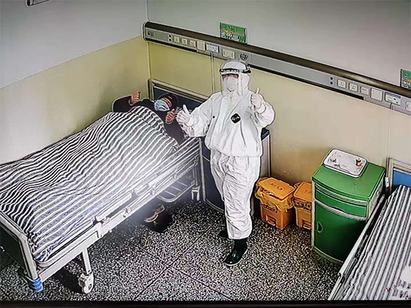 1月28日,年初四,劉琳進(jìn)入新沂市傳染病醫(yī)院隔離病區(qū)。在隔離的空間里,環(huán)境十分艱苦,充滿挑戰(zhàn),工作壓力也非常大。因?yàn)槿藛T緊張,就連清潔衛(wèi)生及消毒床單,也全都是護(hù)士上手。