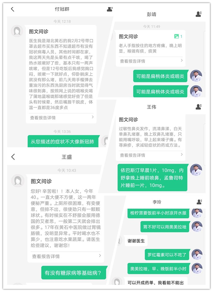 經(jīng)省衛(wèi)健委統(tǒng)一安排,門診部準備完善后,2月19日,徐醫(yī)附院5位專家正式上線,及時回應黃石群眾的咨詢問診、提供用藥指導,建議下一步診療措施,得到黃石居民的積極反響和好評。
