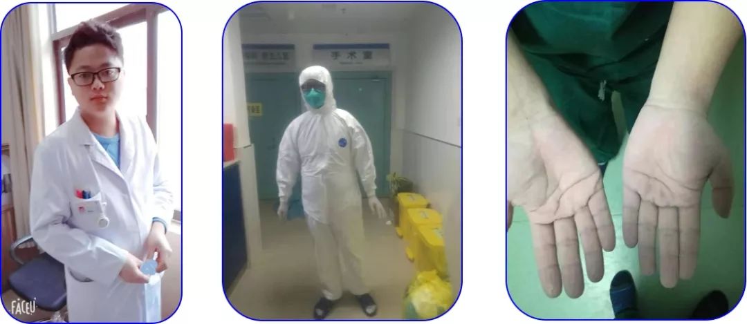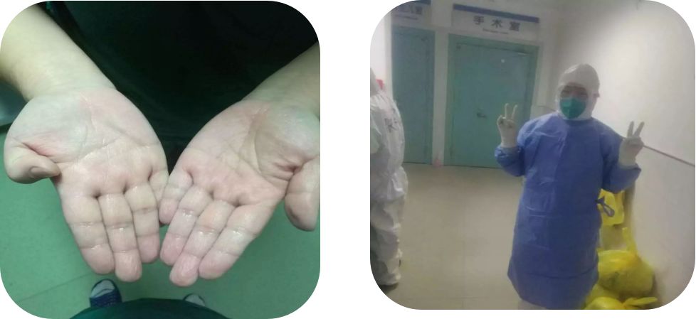 正是由于她和隊(duì)員們對生命的敬畏和負(fù)責(zé),患者才安全的度過了生命中最脆弱的階段。監(jiān)護(hù)病房是6小時(shí)一個(gè)班次,加上交接班和穿脫防護(hù)服的時(shí)間,每天在班7、8個(gè)小時(shí)。為了節(jié)省防護(hù)用物,王慧和隊(duì)友們進(jìn)病房前不敢多喝水,上班期間滴水未進(jìn),工作時(shí)出汗較多,一天下來,明顯感到脫水,面頰、耳廓、手腕部因壓力性損傷常感到疼痛,雙手雙足由于汗水浸漬也出現(xiàn)脫皮現(xiàn)象。但即使是這樣,下班后的她,常常顧不上休息,仍會(huì)和隊(duì)友們一起討論病人的病情、護(hù)理方案和自身防護(hù)中需要改進(jìn)的問題,希望更好的幫助患者早日康復(fù)!