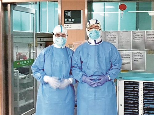 李海泉(右)和同事在武漢市第一醫(yī)院。