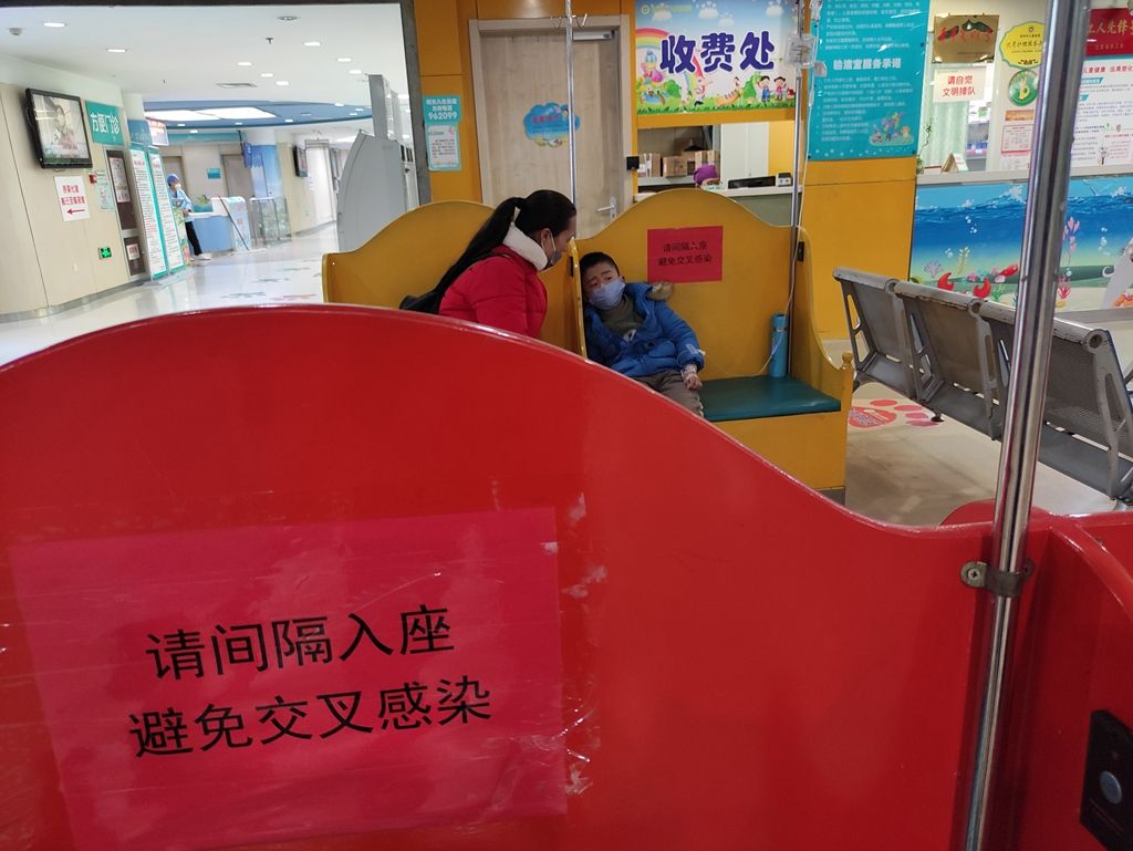“我們將原先能容納400人的座椅撤掉了一半,就為了加大等候區(qū)座椅的間隔,現(xiàn)在座椅間的距離基本在2米左右。”輸液室護(hù)士長(zhǎng)祖靜告訴記者,近段時(shí)間,輸液室每天的人流量在100人次左右,他們通過提前引導(dǎo),輸液患兒錯(cuò)時(shí)來院,同一時(shí)間段內(nèi),輸液家庭不會(huì)超過15組。并且,針對(duì)普通發(fā)熱患兒,他們?cè)O(shè)有專門的輸液區(qū),可保證與不發(fā)熱患兒隔離開來。
