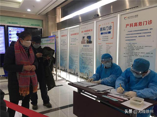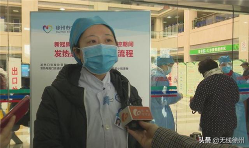 今天上午,記者來到徐州市中心醫(yī)院。在門口的預(yù)檢分診處,醫(yī)護(hù)人員正穿著厚厚的防護(hù)服戴著護(hù)目鏡,忙碌地為患者測量體溫。