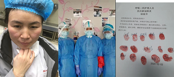 在護(hù)士長(zhǎng)張軍的號(hào)召下,在副護(hù)士長(zhǎng)王賀這一榜樣的引領(lǐng)下,2月3日,呼吸內(nèi)科二病區(qū)全體護(hù)理人員簽署請(qǐng)戰(zhàn)書(shū)并按下自己鮮紅的手印,自愿成為馳援武漢的后備人員。隨著形勢(shì)日益嚴(yán)峻,2月13日,呼吸二科再次調(diào)遣3名護(hù)理人員馳援武漢。她們是:李永麗、高鑫、尹娜。護(hù)士長(zhǎng)張軍說(shuō):“今天起,我的心中又有了一份牽掛。”