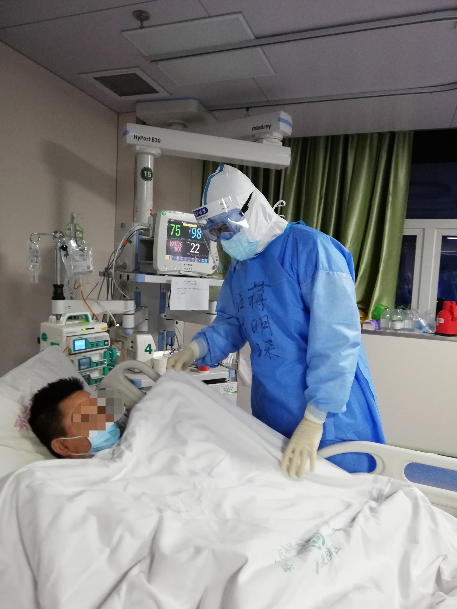 蔣明琛在第一批次援鄂報名的時候就遞交申請,后隨徐醫(yī)附院第三批援鄂醫(yī)療隊支援黃石,并成功開展了黃石市首例ECMO。他所接管的ICU病房為臨時改造的病房,前期投入大量的準備工作,從病房的布局,清潔區(qū)、污染區(qū)和半污染區(qū)的設置,到儀器設備的調(diào)試,各種物品耗材的準備,確保安全接收危重癥患者。