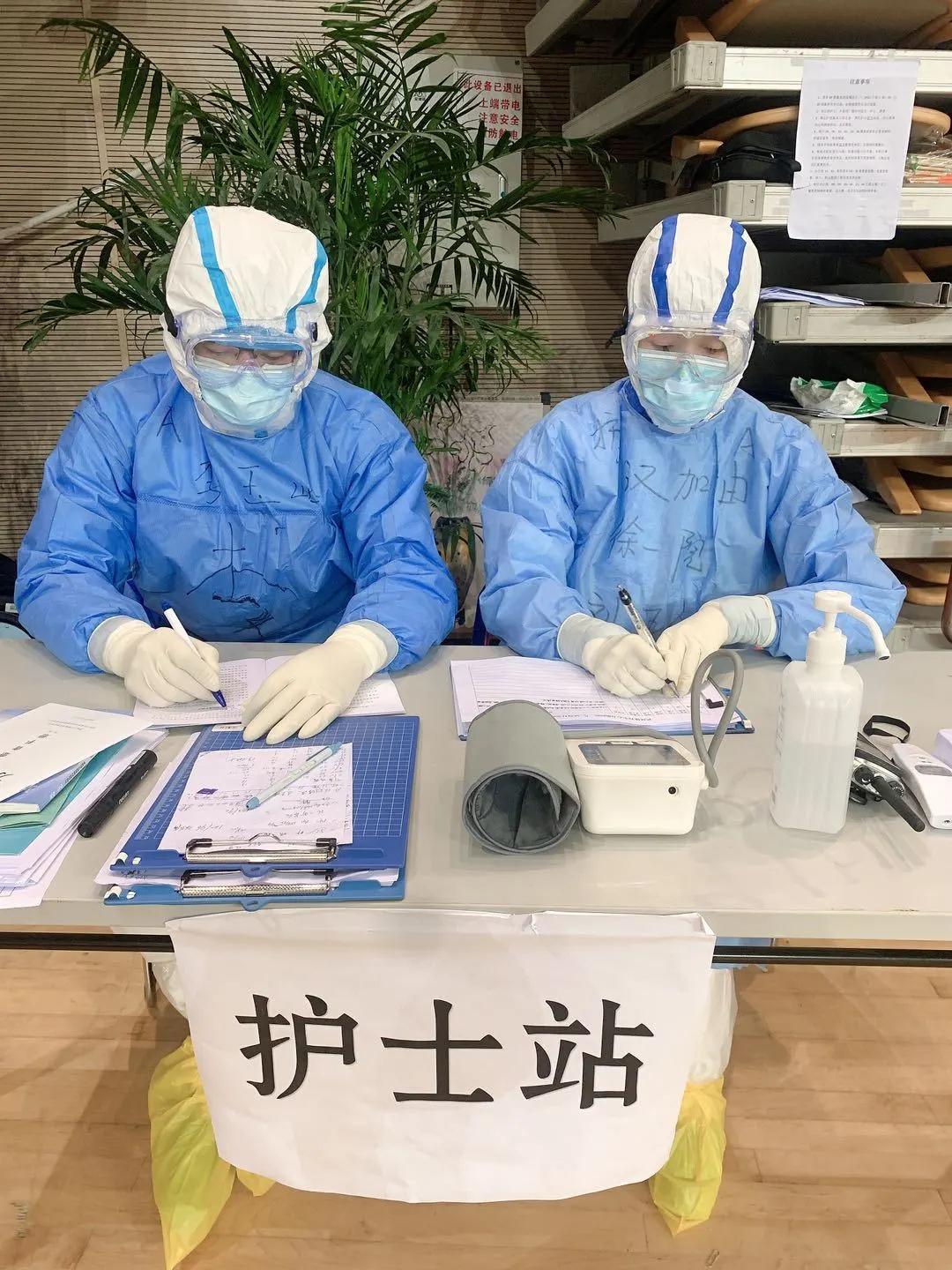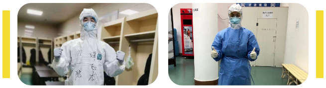 在上班前首先要做好壓瘡防護,穿上多層防護服和紙尿褲,本來苗條的小姑娘小伙子們都變成了可愛的大白,大家互相仔細檢查防護措施是否落實到位,每個醫(yī)護人員都會在外層防護服的胸前或者背后用筆寫上來自的地區(qū)和醫(yī)院名,以及自己的姓名,方便彼此辨認,然后走進方艙進行交接班。