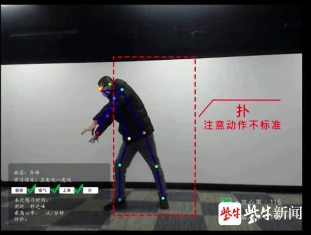 “五禽戲確實相對八段錦要復雜一點,通過視頻教學,能夠掌握一些,這個AI軟件可以幫我快速對比,知道自己哪個動作有問題,切實提高學習速度,整體上比較有趣,像玩游戲的感覺。”一位體驗者表示。