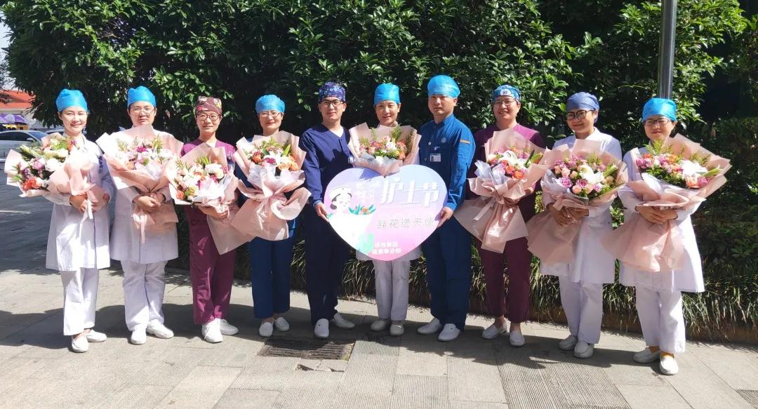 院領(lǐng)導(dǎo)一行先后來(lái)到呼吸與危重癥醫(yī)學(xué)科、重癥醫(yī)學(xué)科、門診服務(wù)臺(tái),與護(hù)士們親切地交談,向她們致以節(jié)日的問(wèn)候和崇高的敬意,感謝她們?yōu)榛颊叩慕】岛歪t(yī)院的發(fā)展做出的努力與貢獻(xiàn),并送上了鮮花與禮品:祝她們永遠(yuǎn)健康、幸福、快樂(lè)、漂亮!