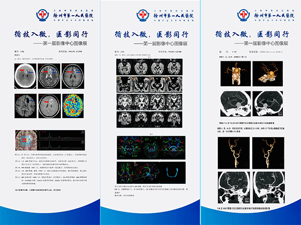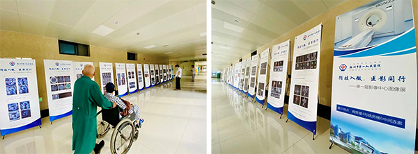 “循技入微,醫(yī)影同行”——徐州市第一人民醫(yī)院第一屆影像中心圖像展,于5月25日開展。不似印象中的書畫展現(xiàn)場那般熱鬧,沒有考究的展廳、精致的裝裱、專業(yè)的燈光、駐足的觀者。以“黑-白-灰”三色為主基調(diào)的展品,獨(dú)立、低調(diào)地佇立在徐州市第一人民醫(yī)院病房4號(hào)樓和6號(hào)樓2層連廊靠墻處,觀者多為一些行色匆匆的醫(yī)者和奔波求診的患者。