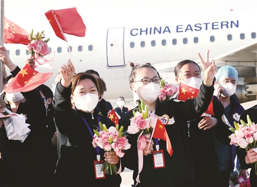 援助湖北的我市醫(yī)護(hù)人員返回徐州。 徐報(bào)融媒記者 齊浩 孫井賢 陳艷 車(chē)佳 攝