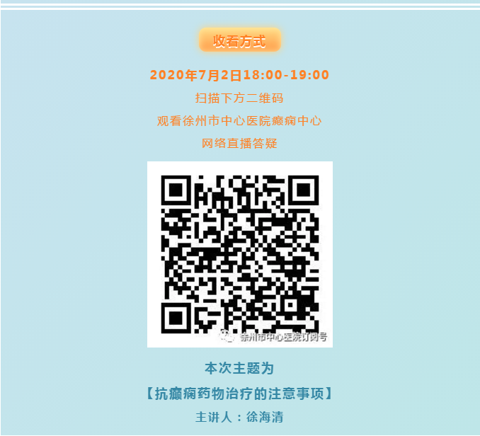 “6.28國際癲癇關(guān)愛日”活動(dòng)期間,徐州市中心醫(yī)院神經(jīng)內(nèi)科曹培衛(wèi)、徐海清、劉志廣、衡衛(wèi)衛(wèi)四位醫(yī)生將通過平臺(tái)線上直播為患者講課答疑,為癲癇患者保駕護(hù)航。