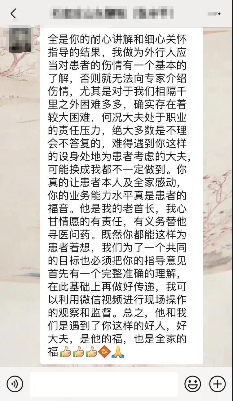 “老首長年齡大了,清創(chuàng)植皮太受罪,我就咨詢各地的戰(zhàn)友,看看能不能碰碰運氣——找到不用手術就能祛疤的方法。”張先生在微信上與陳艷護士交流。