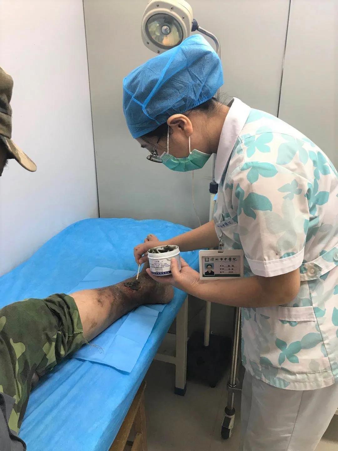 陳艷護士表示:“根據患者傷口愈合情況進行中西結合交替換藥,可以大大縮短去痂過程需要的時間,提高生肌膏的滲透吸收效果,互為條件,相互支持,為患者減輕疼痛,也避免了二次手術。”