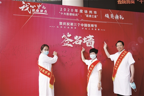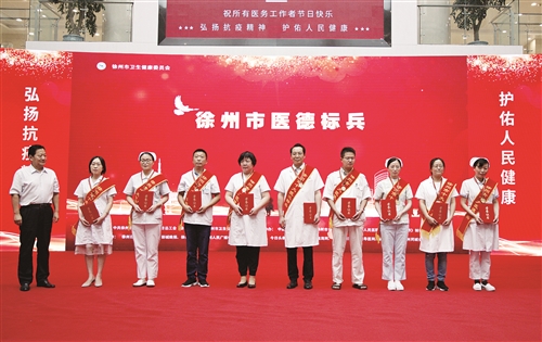 為加強(qiáng)全市衛(wèi)生健康系統(tǒng)職業(yè)道德和精神文明建設(shè),持續(xù)深入開展新時代衛(wèi)生職業(yè)精神宣傳,樹立宣揚(yáng)先進(jìn)典型,進(jìn)一步弘揚(yáng)抗疫精神,8月18日,2020年度徐州市“十大醫(yī)德標(biāo)兵”“醫(yī)德之星”頒獎典禮暨慶祝第3個中國醫(yī)師節(jié)活動隆重舉行。此次活動由中共徐州市委宣傳部、徐州市文明辦、徐州市總工會、徐州市衛(wèi)生健康委員會聯(lián)合主辦。
