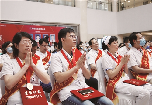 在他們中,涌現(xiàn)出一大批優(yōu)秀典型,獲得了省級/市級榮譽(yù)稱號。2020年度,榮獲江蘇省第五屆“百名醫(yī)德之星”的徐州醫(yī)護(hù)工作者共9人,在我心中的健康使者——2020年度徐州市“十大醫(yī)德標(biāo)兵”“醫(yī)德之星”推選活動中,產(chǎn)生10名“徐州市十大醫(yī)德標(biāo)兵”,及29名“徐州市醫(yī)德之星”;顒蝇F(xiàn)場,衛(wèi)生健康系統(tǒng)對這批優(yōu)秀醫(yī)護(hù)人員進(jìn)行了表彰。