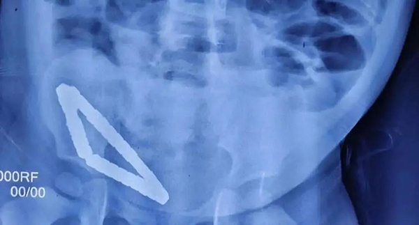 8月4日,徐州市兒童醫(yī)院接診一名1歲9個(gè)月的男童彬彬(化名),據(jù)患兒家長(zhǎng)口述,孩子連續(xù)幾天高燒不退,嘔吐且無(wú)法進(jìn)食,一直哭鬧不止。患兒在當(dāng)?shù)蒯t(yī)院檢查拍X片查出腹腔內(nèi)有異物,消化道已穿孔,因當(dāng)?shù)蒯t(yī)院無(wú)法處理轉(zhuǎn)院至徐州市兒童醫(yī)院。
