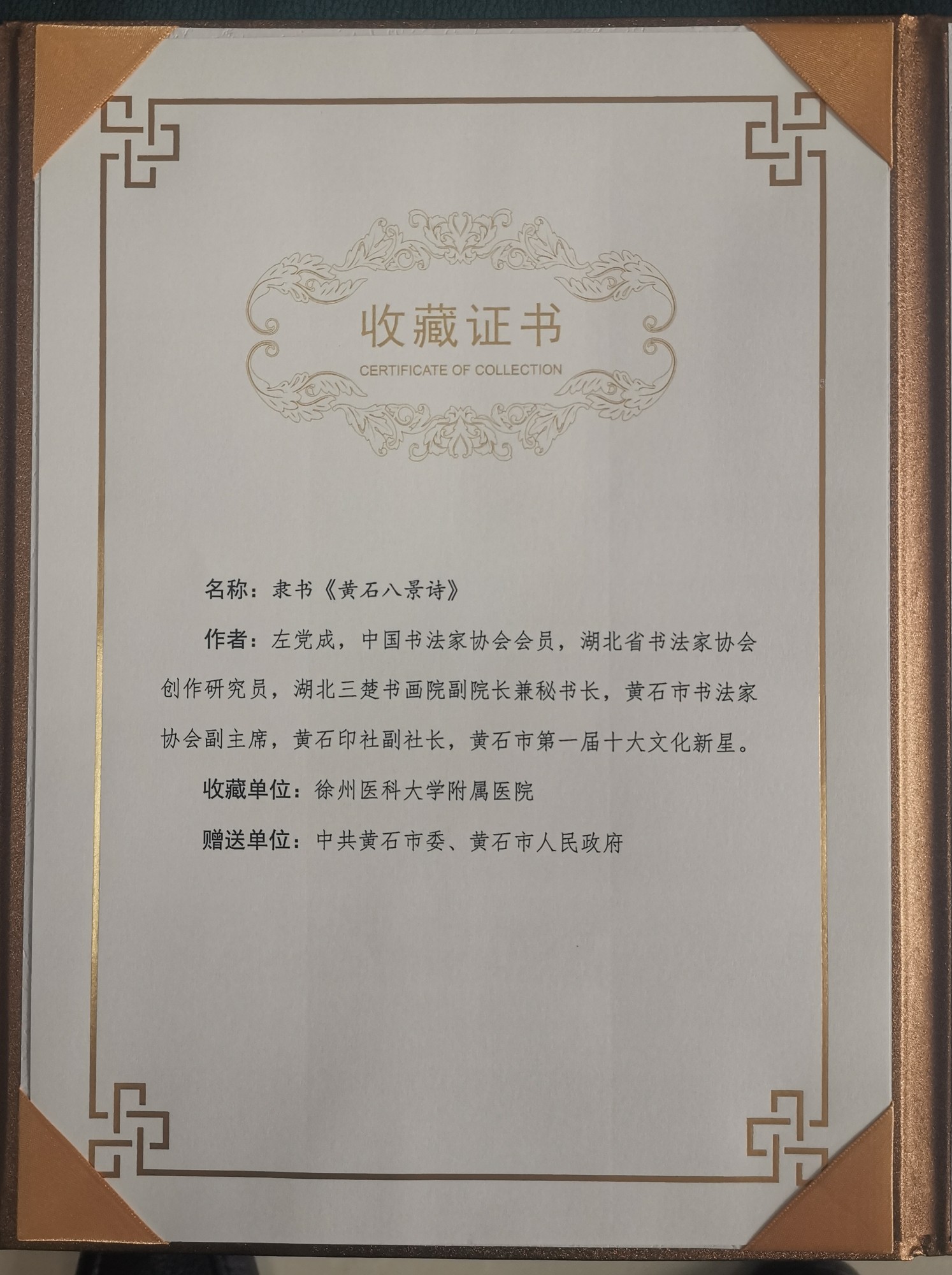 黃石市委市政府向徐醫(yī)附院贈送書法作品
