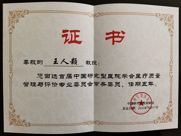 10月17日,由中國(guó)研究型醫(yī)院學(xué)會(huì)主辦、中日友好醫(yī)院等單位協(xié)辦的2020中國(guó)醫(yī)院院長(zhǎng)質(zhì)量管理高峰論壇開幕,會(huì)上正式批復(fù)成立了中國(guó)研究型醫(yī)院學(xué)會(huì)醫(yī)療質(zhì)量管理與評(píng)價(jià)專業(yè)委員會(huì)。據(jù)悉,該專委會(huì)名譽(yù)主任委員由中國(guó)工程院副院長(zhǎng)、院士王辰,中國(guó)工程院院士吳以嶺擔(dān)任。徐州醫(yī)科大學(xué)附屬醫(yī)院黨委書記王人顥當(dāng)選為首屆研究型醫(yī)院學(xué)會(huì)醫(yī)療質(zhì)量管理與評(píng)價(jià)專業(yè)委員會(huì)常務(wù)委員。