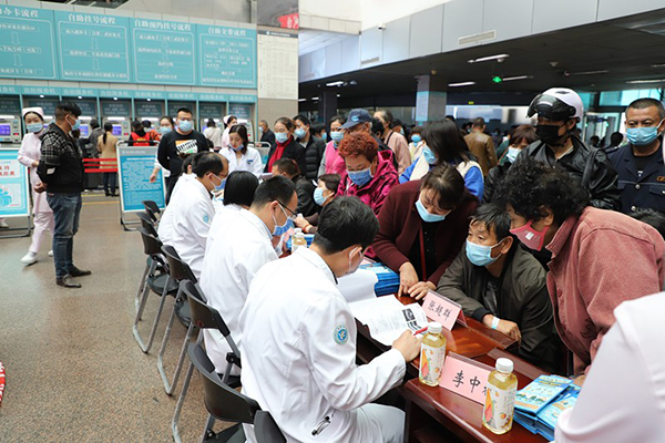 啟動儀式結束后,由徐醫(yī)附院神經內科、內分泌科、心內科、康復科、卒中中心組成的專家義診團在門診大廳進行了世界卒中日院內大型義診。