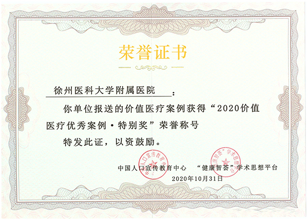 徐醫(yī)附院榮獲“2020價(jià)值醫(yī)療優(yōu)秀案例特別獎(jiǎng)”
