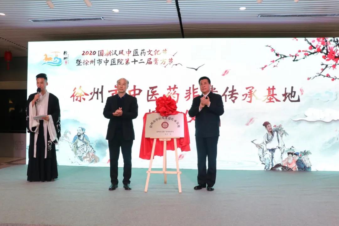 隨后,崔鋒局長(zhǎng)和劉峰院長(zhǎng)上臺(tái),為“徐州市中醫(yī)藥非遺傳承基地”揭牌。