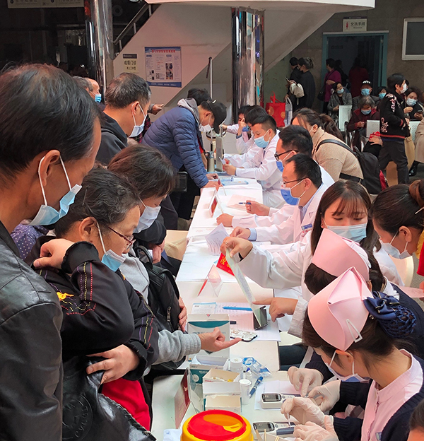 2020年11月14日是第14個(gè)“聯(lián)合國(guó)糖尿病日”。今年的主題是“護(hù)士與糖尿病”,旨在強(qiáng)化護(hù)理在糖尿病健康管理中的重要作用,有效干預(yù)糖尿病危險(xiǎn)因素,促進(jìn)高危人群和患者的早期發(fā)現(xiàn)與干預(yù),提高糖尿病患者自我管理能力,切實(shí)降低糖尿病危害,保護(hù)人民群眾身體健康。11月13日,徐醫(yī)附院內(nèi)分泌科在門(mén)診一樓大廳舉辦 “聯(lián)合國(guó)糖尿病日大型宣傳義診活動(dòng)”,為廣大“糖友”和市民免費(fèi)義診,答疑解惑,呼吁“早發(fā)現(xiàn)、早治療、早達(dá)標(biāo)、早獲益”,防控糖尿病,實(shí)現(xiàn)全民健康。