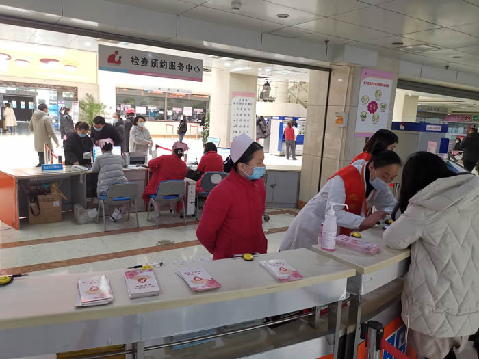 宣傳日當(dāng)天,健康教育科與門(mén)診部組織志愿者發(fā)放預(yù)防艾滋病相關(guān)資料。