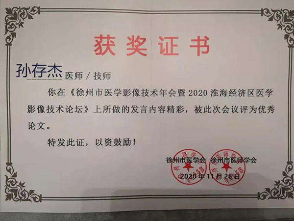 黃淮網(wǎng)  11月27-28日,徐醫(yī)附院影像科技師團(tuán)隊(duì)參加“徐州市醫(yī)學(xué)影像技術(shù)年會(huì)暨2020年淮海經(jīng)濟(jì)區(qū)醫(yī)學(xué)影像技術(shù)論壇”,獲得團(tuán)體優(yōu)秀獎(jiǎng)。