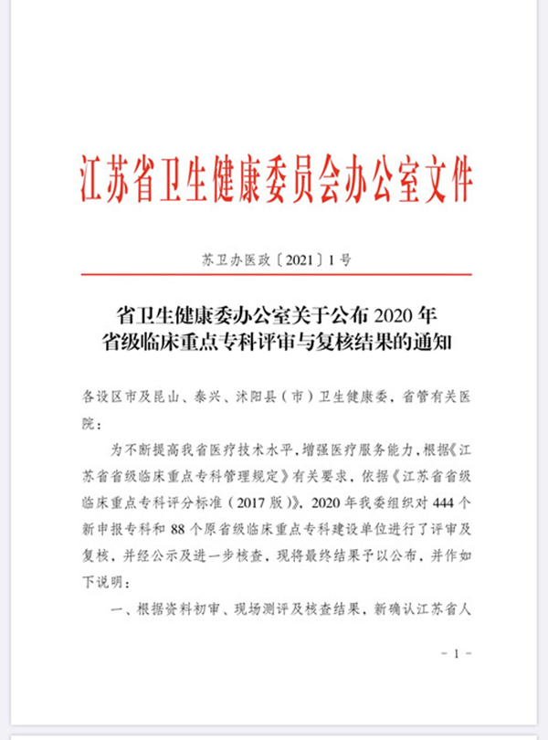 江蘇省級臨床重點?22個:心血管內(nèi)科、口腔科、康復(fù)科、泌尿外科、內(nèi)分泌科、婦科、腫瘤內(nèi)科、骨科、影像科、中醫(yī)科、兒科、產(chǎn)科、放療科、呼吸科、重癥醫(yī)學(xué)科、腎內(nèi)科、麻醉科、醫(yī)學(xué)檢驗科、神經(jīng)內(nèi)科、急診醫(yī)學(xué)科、心胸外科(胸外科心外科);