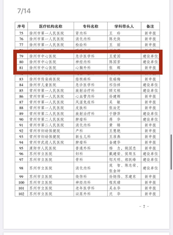 徐州市中心醫(yī)院心胸外科被確認(rèn)為省級臨床重點?,全院現(xiàn)有22個省重點!