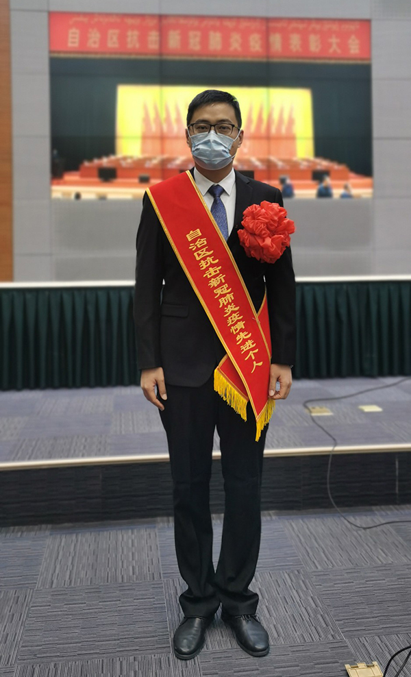 黃淮網(wǎng)(宋言靜)  1月20日,新疆維吾爾自治區(qū)抗擊新冠肺炎疫情表彰大會在新疆人民會堂舉行,徐州醫(yī)科大學(xué)附屬醫(yī)院援疆專家邱小松被新疆自治區(qū)黨委和政府授予“擊新冠肺炎疫情先進(jìn)個人”榮譽(yù)稱號。