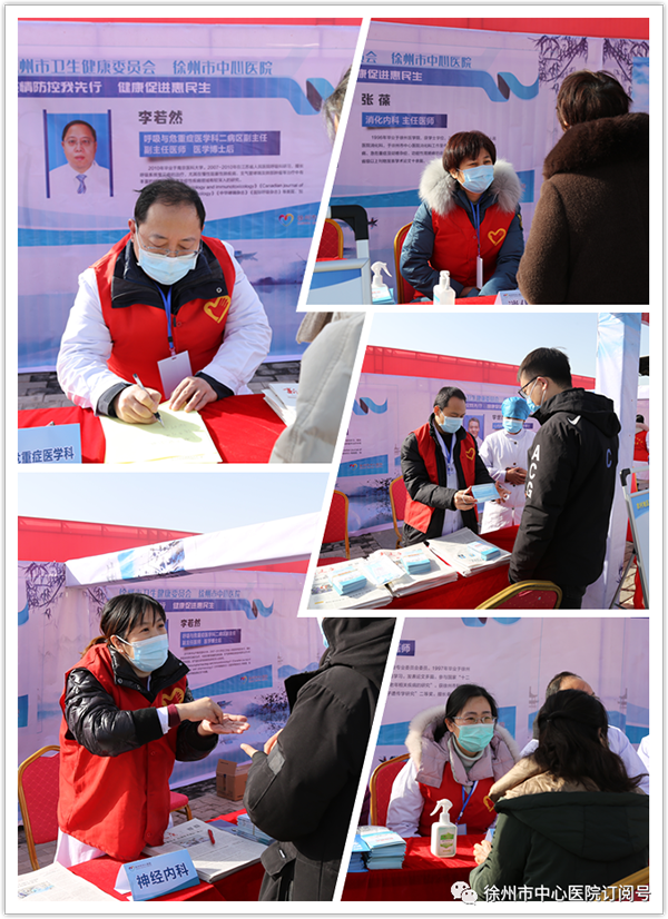 義診活動(dòng)現(xiàn)場,李若然、黃穎、李世杰、張葆、衡浩等為當(dāng)?shù)厝罕娒赓M(fèi)問診、指導(dǎo)用藥。同時(shí)針對群眾普遍關(guān)心的防疫知識如七步洗手法、口罩的正確佩戴方法等開展了現(xiàn)場演示。徐州市中心醫(yī)院印制的新冠肺炎防控科普手冊口袋書和院報(bào)等健康教育資料受到群眾歡迎。
