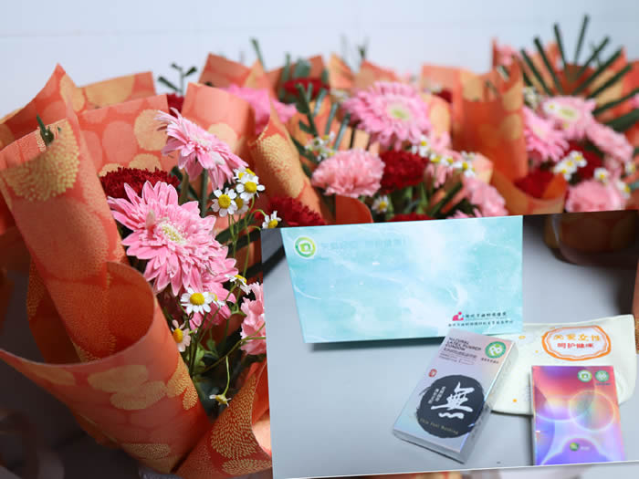 講座結(jié)束后,孕婦學(xué)校工作人員為準(zhǔn)媽媽們送上母親節(jié)鮮花和祝福。