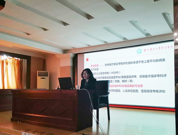 徐州醫(yī)科大學附屬醫(yī)院醫(yī)療質量管理辦公室主任兼病案統(tǒng)計科劉穎科長進行了題為《DRGs分組與病案首頁數(shù)據(jù)質量》的講座。劉科長從病案首頁數(shù)據(jù)重要性到DRGs及徐州市醫(yī)保細分組簡介以及影響分組的主要項目填寫規(guī)范進行了精彩解讀。