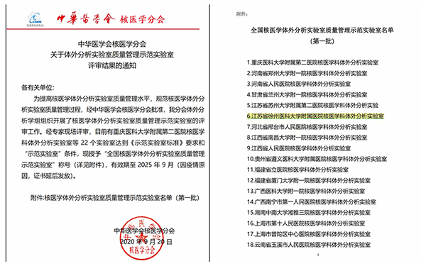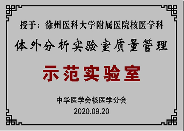 徐醫(yī)附院核醫(yī)學(xué)實驗室被授予全國首批核醫(yī)學(xué)體外分析實驗室質(zhì)量管理“示范實驗室”稱號