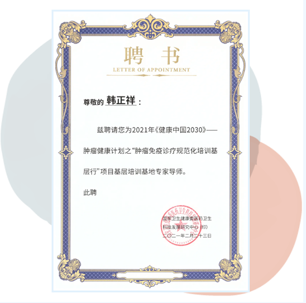 據(jù)悉,國家衛(wèi)健委醫(yī)藥衛(wèi)生科技發(fā)展研究中心向全國首批192家基層醫(yī)院頒發(fā)“2021年腫瘤免疫診療適宜技術(shù)推廣基層培訓基地”證書。徐州醫(yī)科大學附屬醫(yī)院被授予“2021年腫瘤免疫診療適宜技術(shù)推廣基層培訓基地”,腫瘤內(nèi)科韓正祥教授受聘為“腫瘤免疫診療規(guī)范化培訓基層行”項目基層培訓基地專家導師。