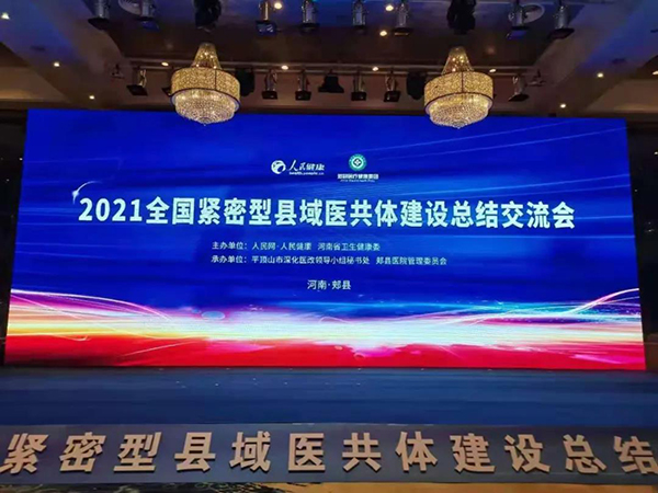 黃淮網(wǎng)  6月5日上午,由國(guó)家衛(wèi)生健康委基層衛(wèi)生健康司支持,人民網(wǎng)·人民健康、河南省衛(wèi)生健康委聯(lián)合主辦,平頂山市深化醫(yī)改領(lǐng)導(dǎo)小組秘書處、郟縣醫(yī)院管理委員會(huì)承辦的“2021全國(guó)緊密型縣域醫(yī)共體建設(shè)總結(jié)交流會(huì)暨2020-2021典型案例發(fā)布儀式”在河南省平頂山市舉行。