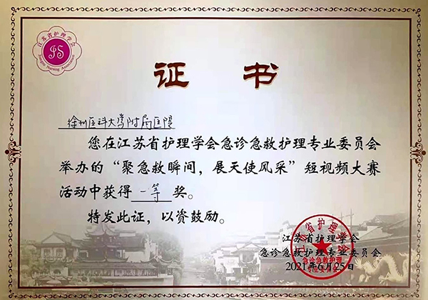 在25日專委會舉辦的“聚急救瞬間,展天使風(fēng)采”抖音短視頻大賽中,由徐醫(yī)附院申報的“急救勇?lián)?dāng),精技護生命”為主題的短視頻在100余家醫(yī)院參加的比賽角逐中,經(jīng)網(wǎng)絡(luò)初評及現(xiàn)場評審后,榮獲一等獎。該視頻由急診醫(yī)學(xué)科護理團隊共同籌劃,由?谱o士趙明階拍攝并制作完成。