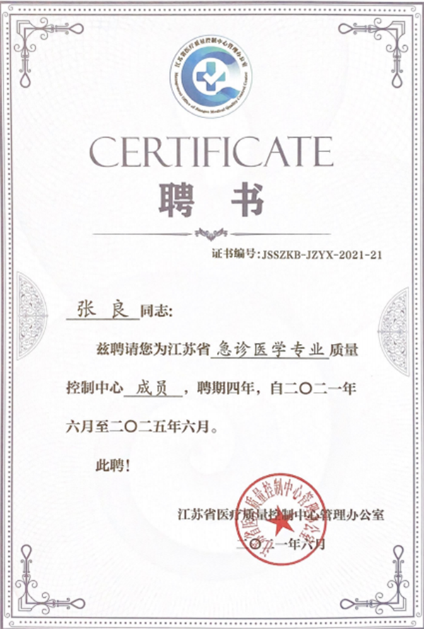 近日,從江蘇省醫(yī)療質(zhì)量控制中心管理辦公室傳來喜訊,徐州市第一人民醫(yī)院急診醫(yī)學(xué)科主任張良同志,獲聘為江蘇省急診醫(yī)學(xué)專業(yè)質(zhì)量控制中心委員。這是徐州市第一人民醫(yī)院急診醫(yī)學(xué)科首次獲此殊榮,標(biāo)志著徐州市第一人民醫(yī)院急診醫(yī)學(xué)科醫(yī)療質(zhì)量控制水平在規(guī)范化、標(biāo)準(zhǔn)化、科學(xué)化方面走在全省的前列。