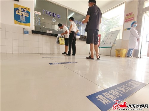 徐州市傳染病醫(yī)院排隊(duì)保持一米線。通訊員 吳啟霞 攝